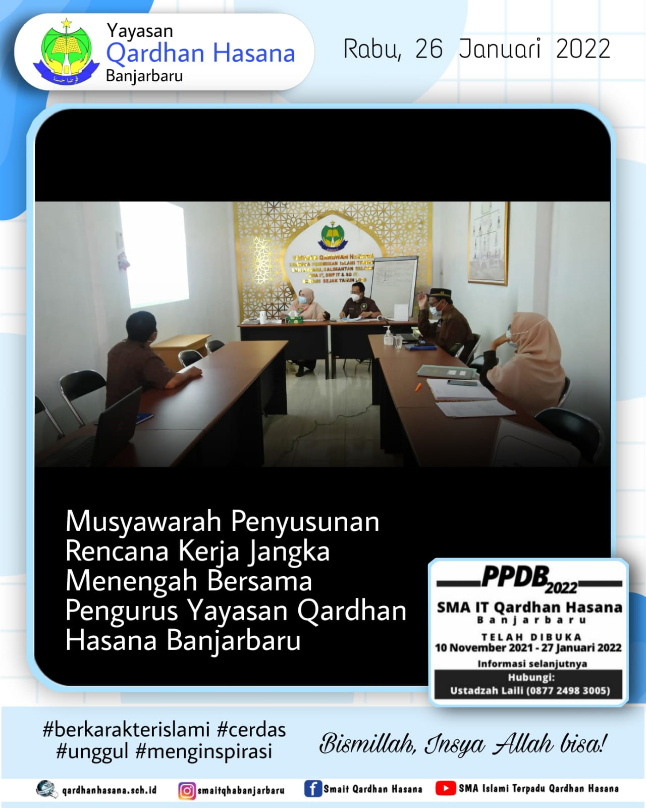 Alhamdulillah. Telah terlaksana kegiatan Sosialisasi UTBK Fest dari Zenius yang merupakan platform edukasi berbasis teknologi kepada Peserta Didik Kelas XII MIPA SMA IT Qardhan Hasana Banjarbaru pada hari Jum'at, . . . 0