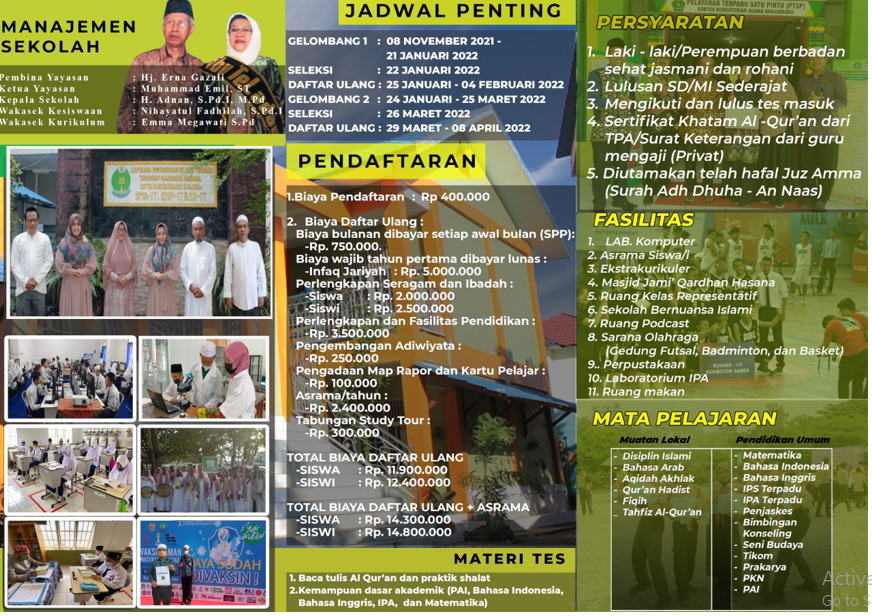 Jadwal Penerimaan Peserta Didik Baru SMP-IT Qardhan Hasana